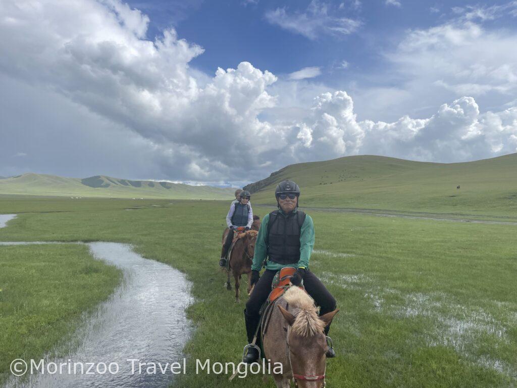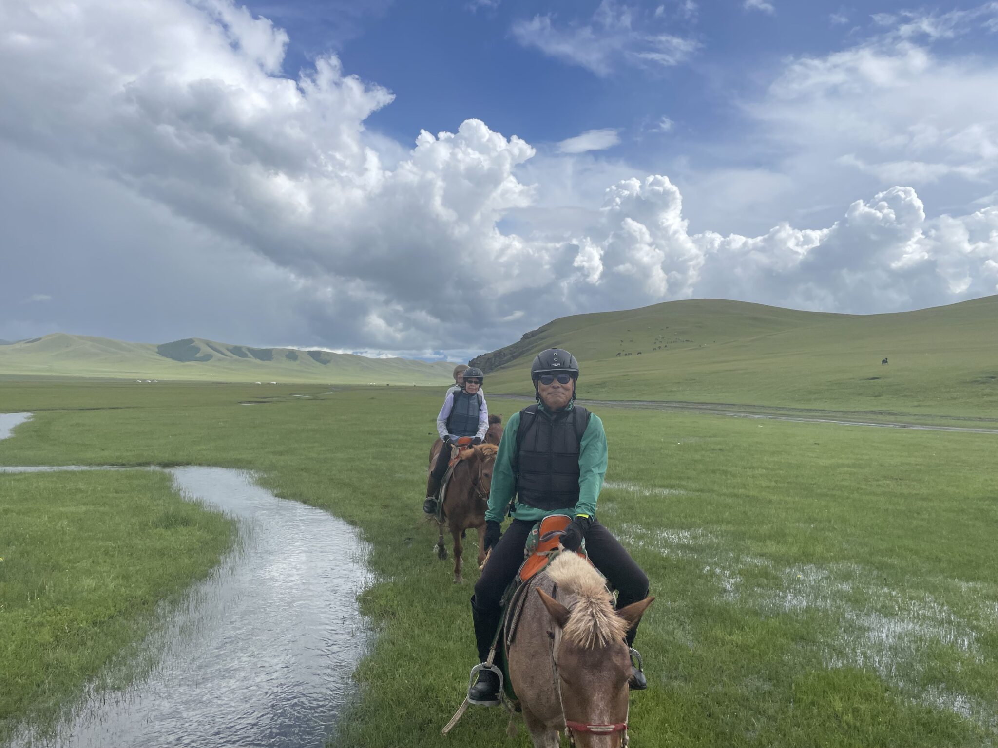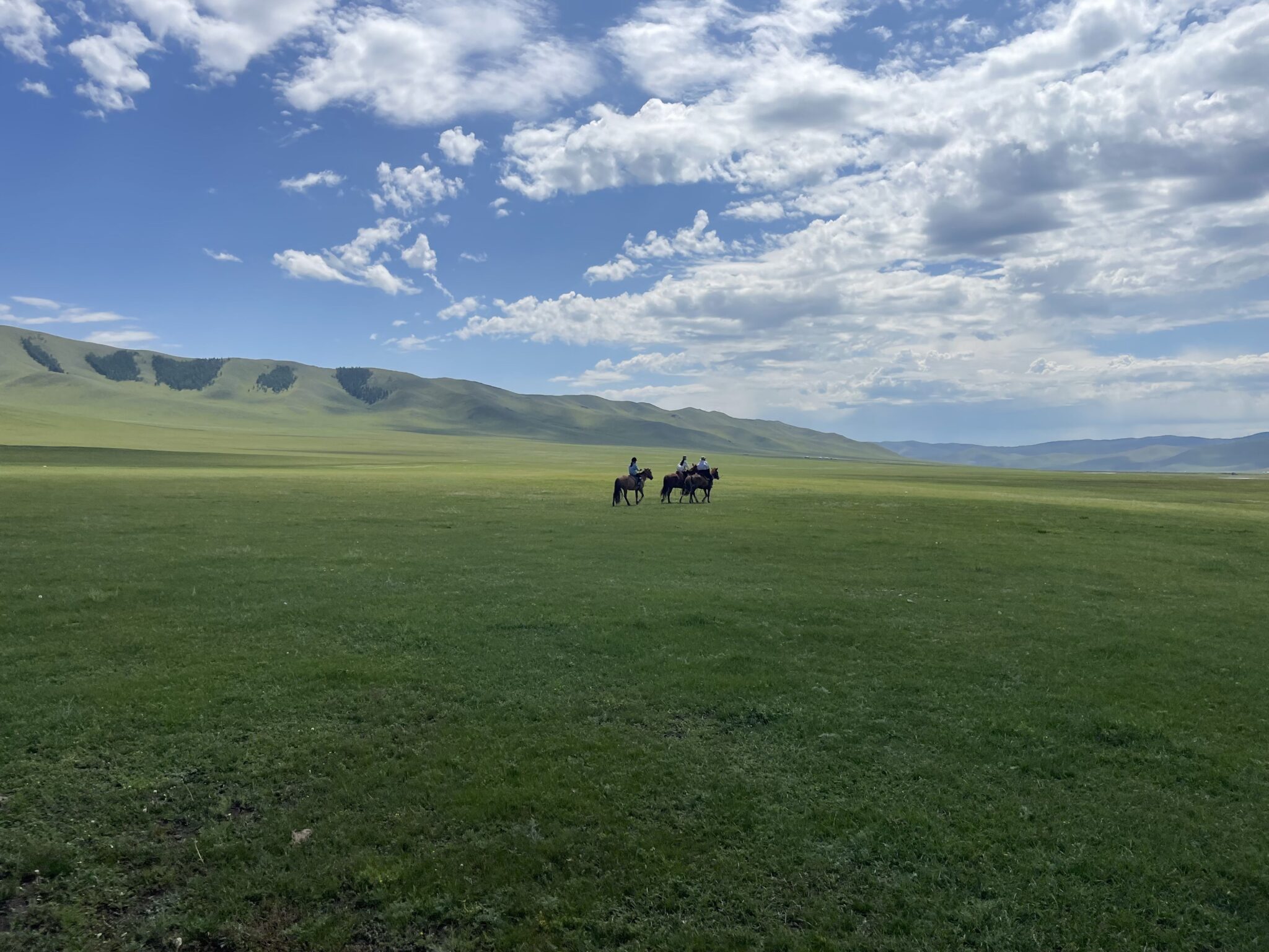 午前:モンゴル馬の扱い方・鞍や馬具の説明を受け、草原で軽く乗馬体験(約20〜30分)。
