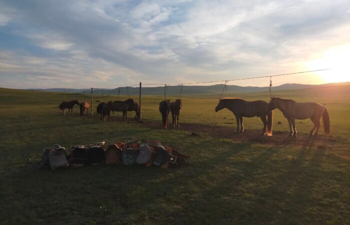 午前:それぞれのレベルに合わせて、モンゴルの大草原での乗馬をお楽しみいただきます。